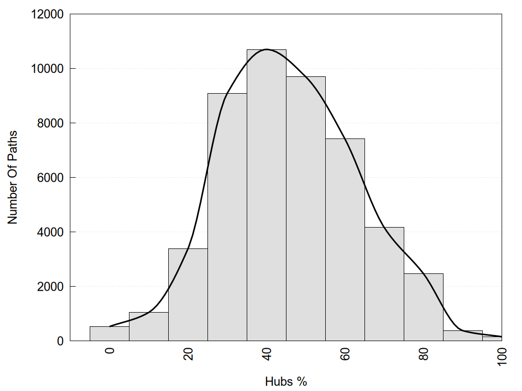 Hub1?, Hub2?: "Yes" if the corresponding node has more than 3 links, otherwise "No".