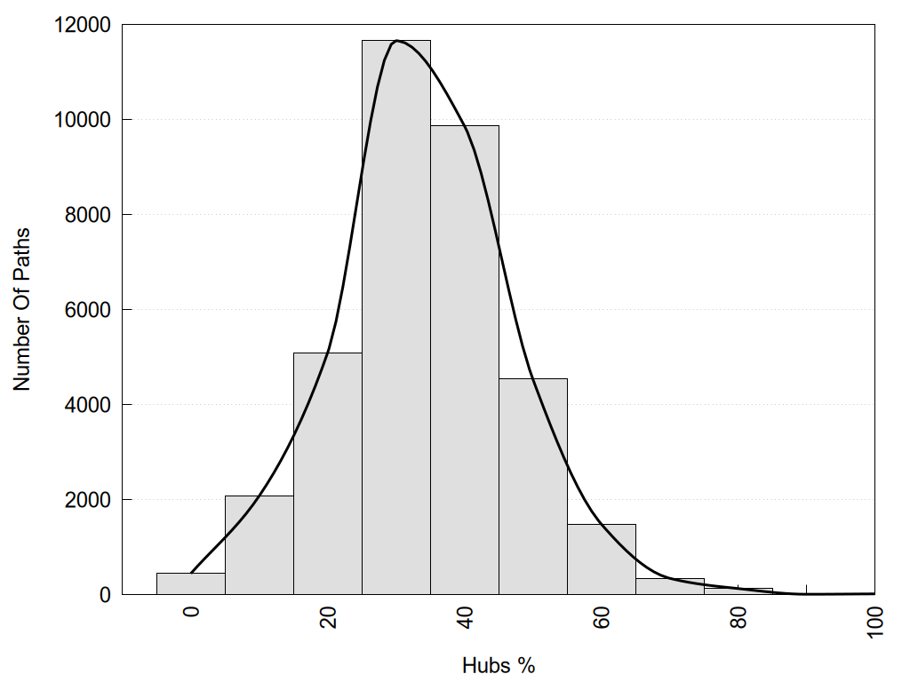 Hub1?, Hub2?: "Yes" if the corresponding node has more than 3 links, otherwise "No".