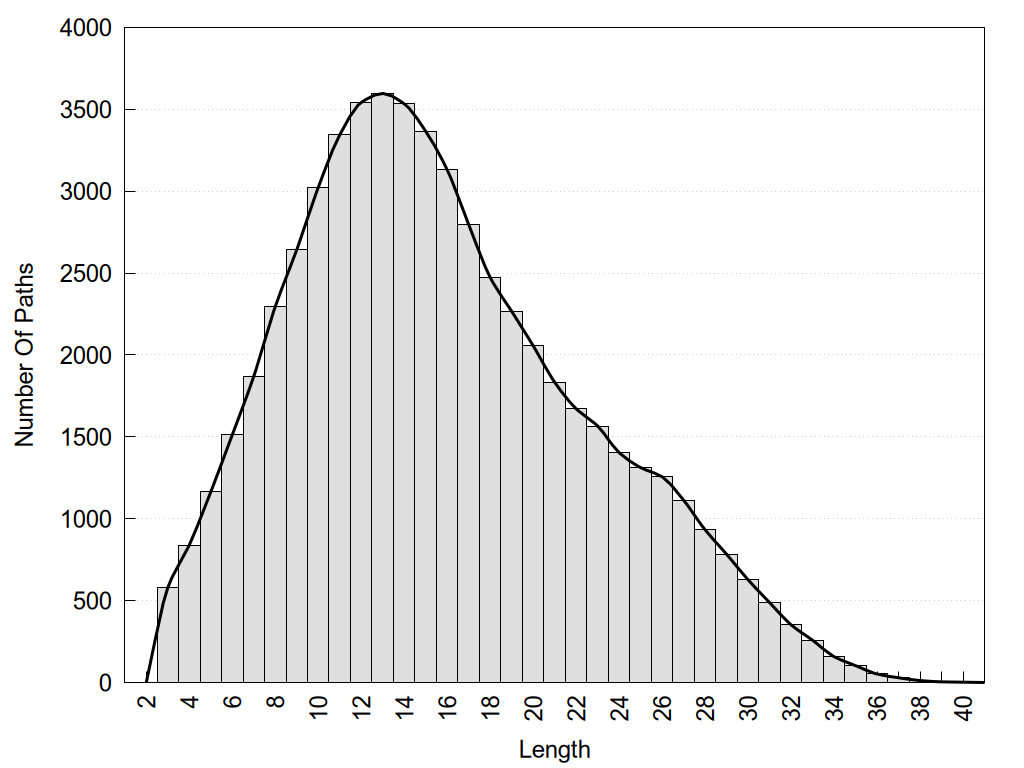 histograms of path distribution according to several parameters