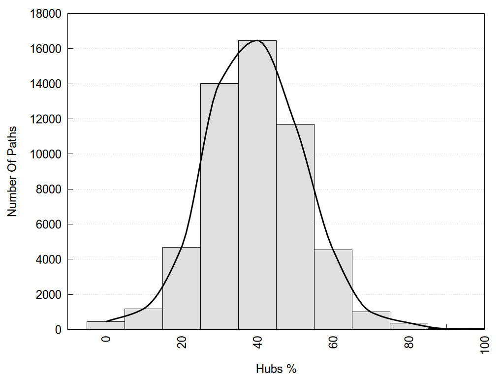 Hub1?, Hub2?: "Yes" if the corresponding node has more than 3 links, otherwise "No".