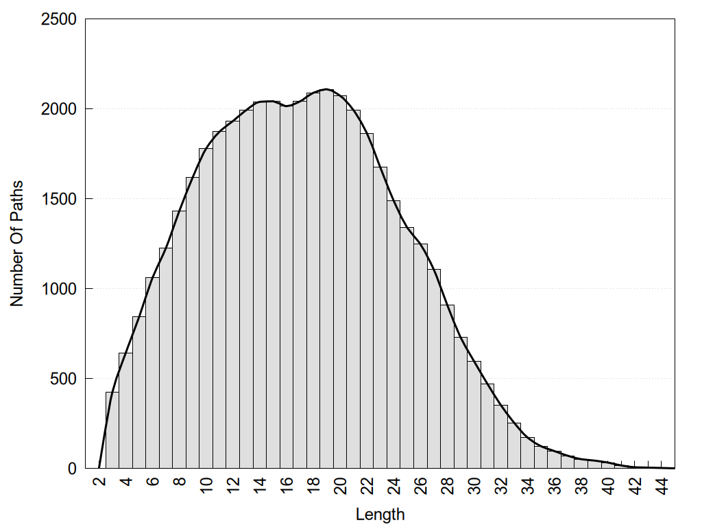 histograms of path distribution according to several parameters