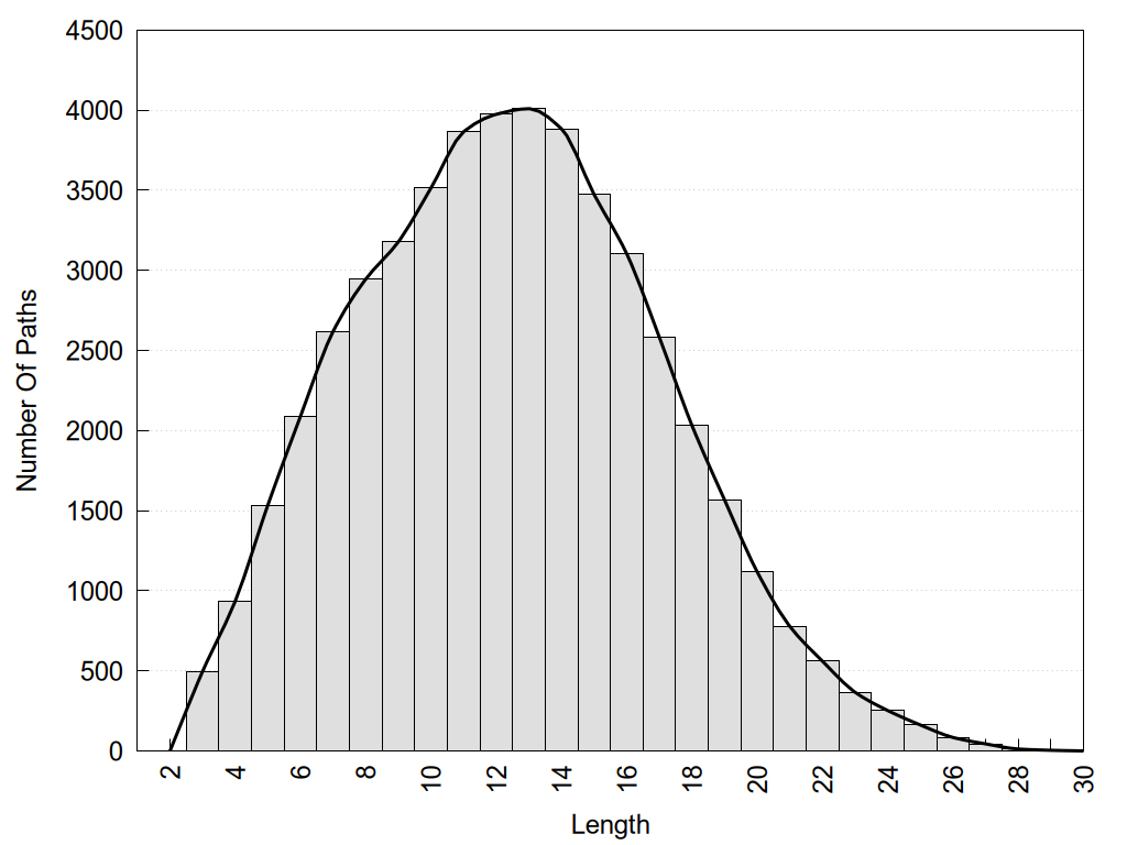 histograms of path distribution according to several parameters