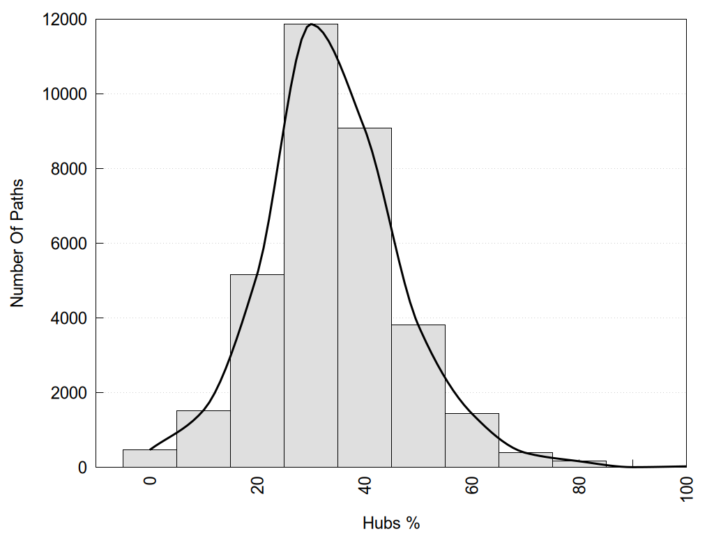 Hub1?, Hub2?: "Yes" if the corresponding node has more than 3 links, otherwise "No".