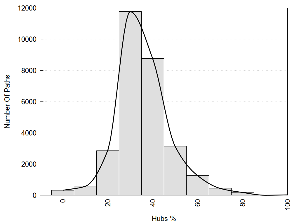 Hub1?, Hub2?: "Yes" if the corresponding node has more than 3 links, otherwise "No".