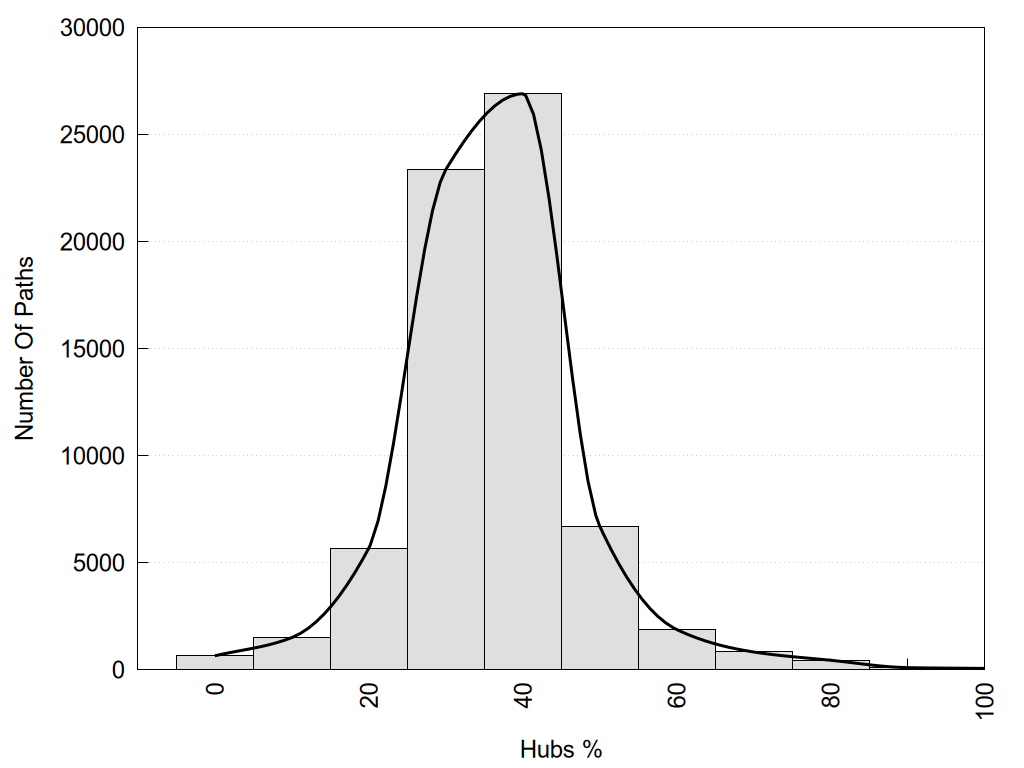 Hub1?, Hub2?: "Yes" if the corresponding node has more than 3 links, otherwise "No".