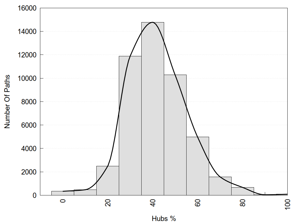 Hub1?, Hub2?: "Yes" if the corresponding node has more than 3 links, otherwise "No".