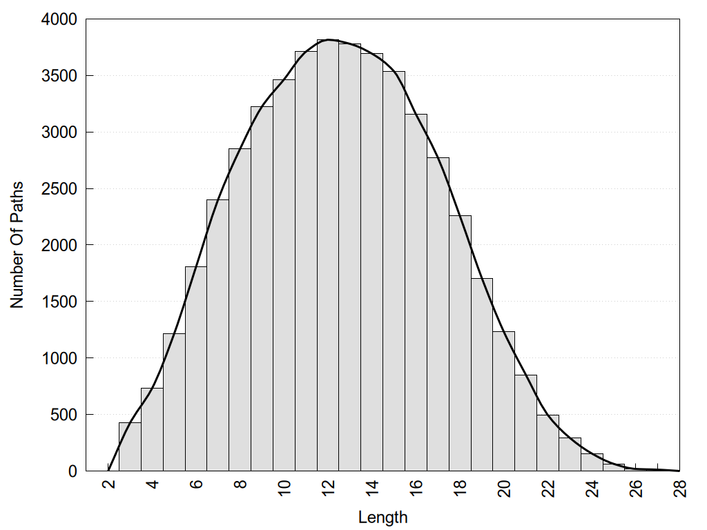 histograms of path distribution according to several parameters