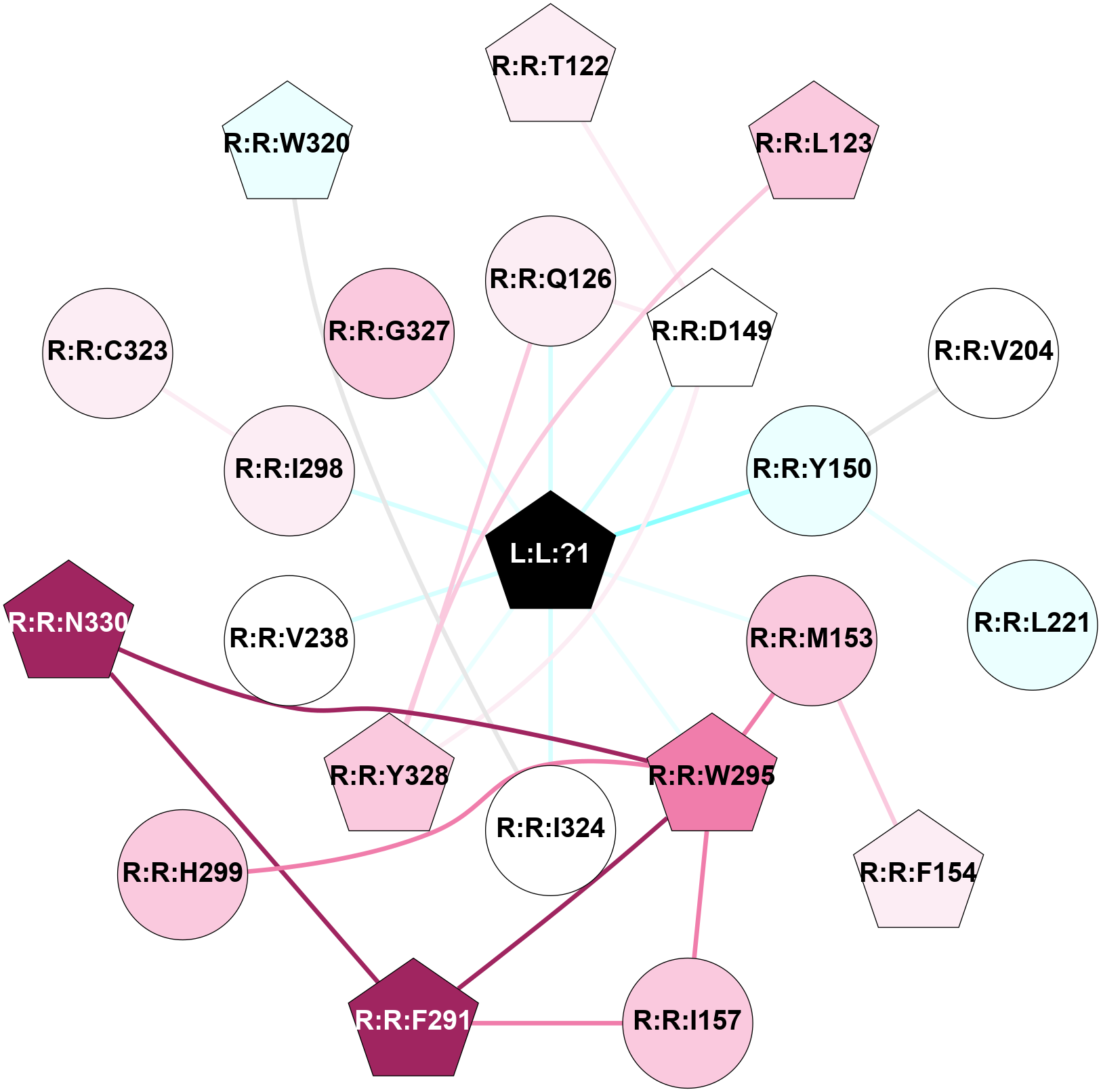 Links and nodes colored according to ConSurf Conservation Grade (See documentation): n/a 1 2 3 4 5 6 7 8 9 |