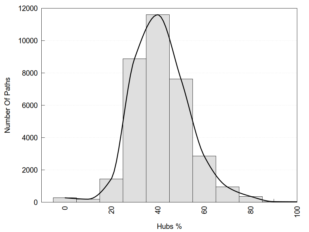 Hub1?, Hub2?: "Yes" if the corresponding node has more than 3 links, otherwise "No".