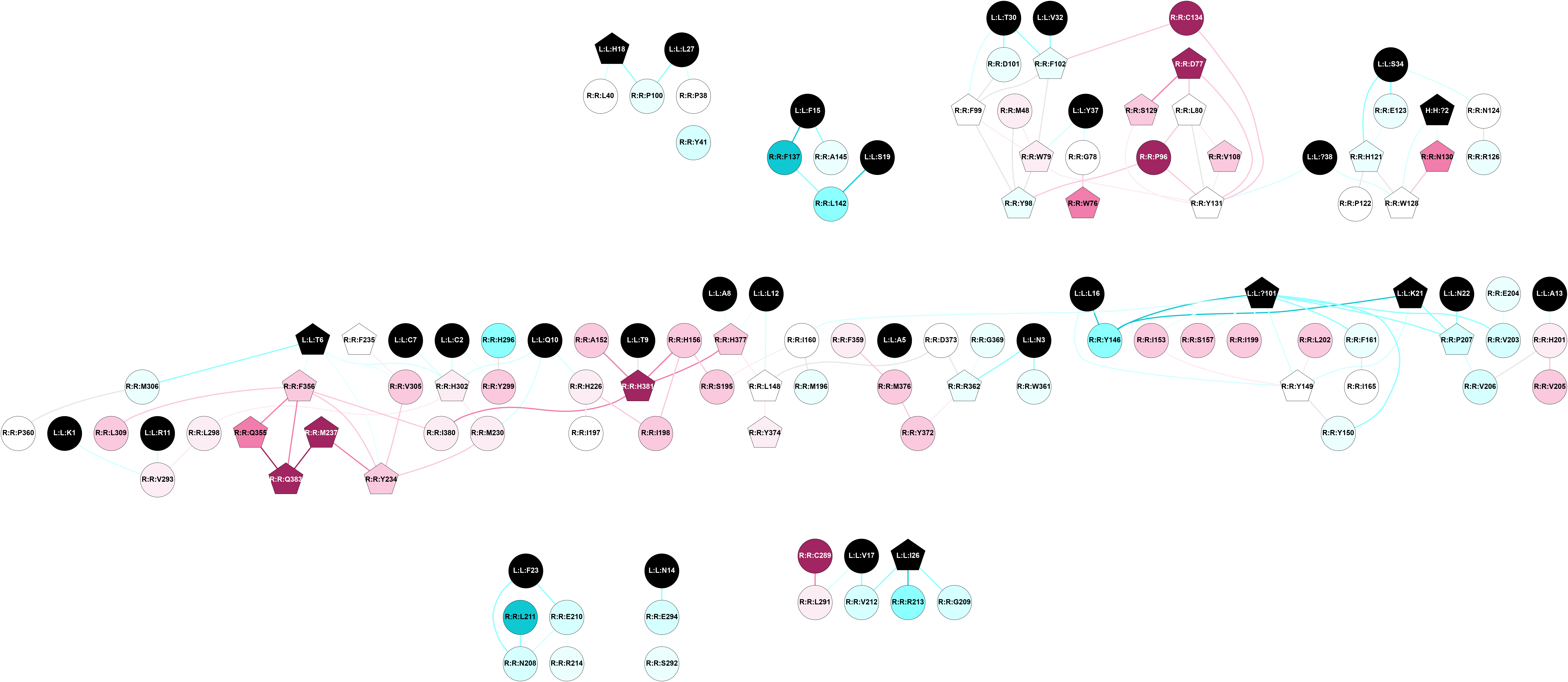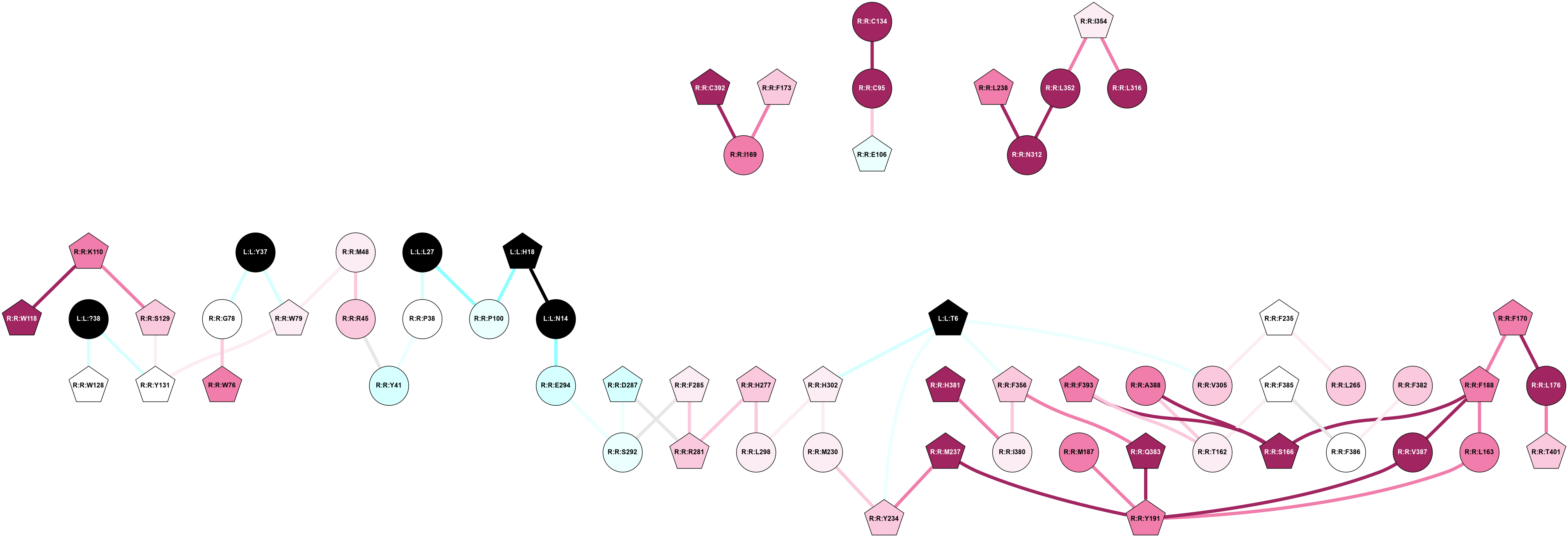 | 43 | L:L:K21 | R:R:Y149 | 3.58 | Yes | Yes | 5 | 0 | 5 |