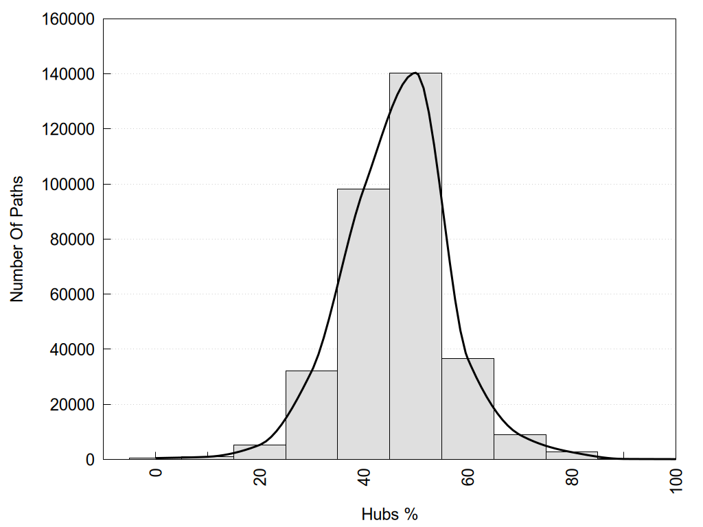 Hub1?, Hub2?: "Yes" if the corresponding node has more than 3 links, otherwise "No".