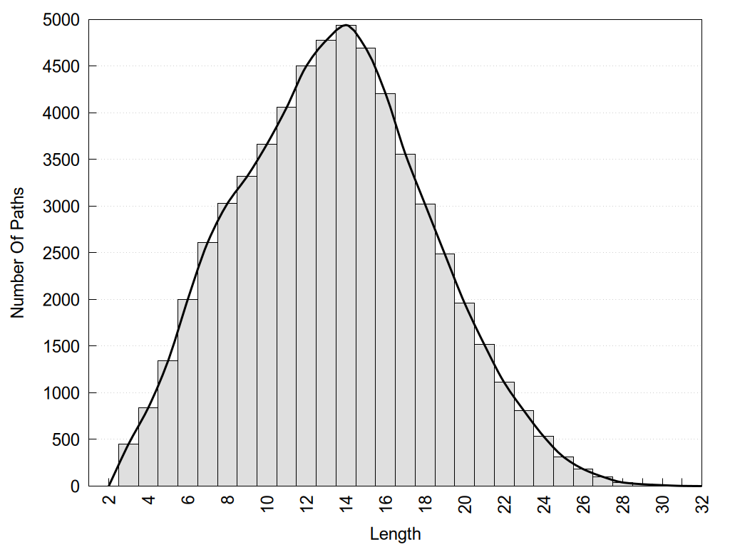 histograms of path distribution according to several parameters