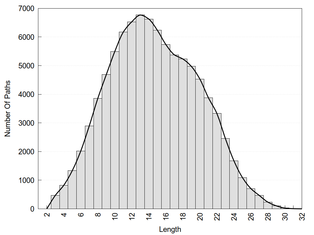 histograms of path distribution according to several parameters