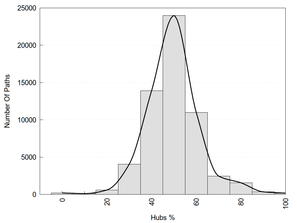 Hub1?, Hub2?: "Yes" if the corresponding node has more than 3 links, otherwise "No".