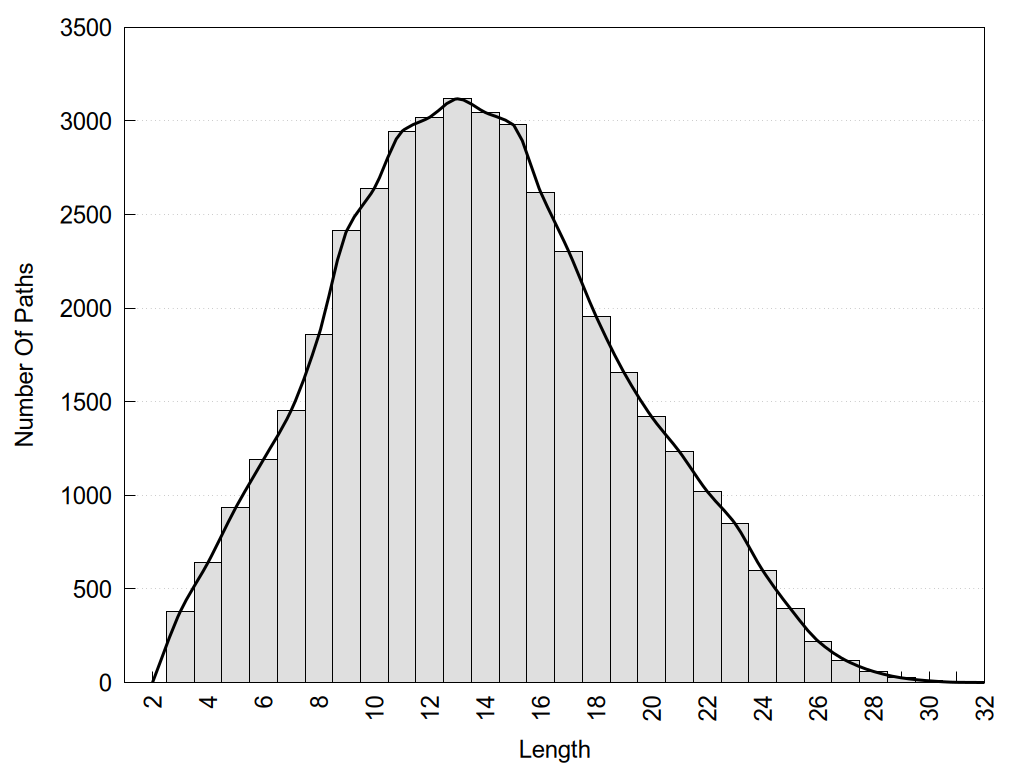 histograms of path distribution according to several parameters