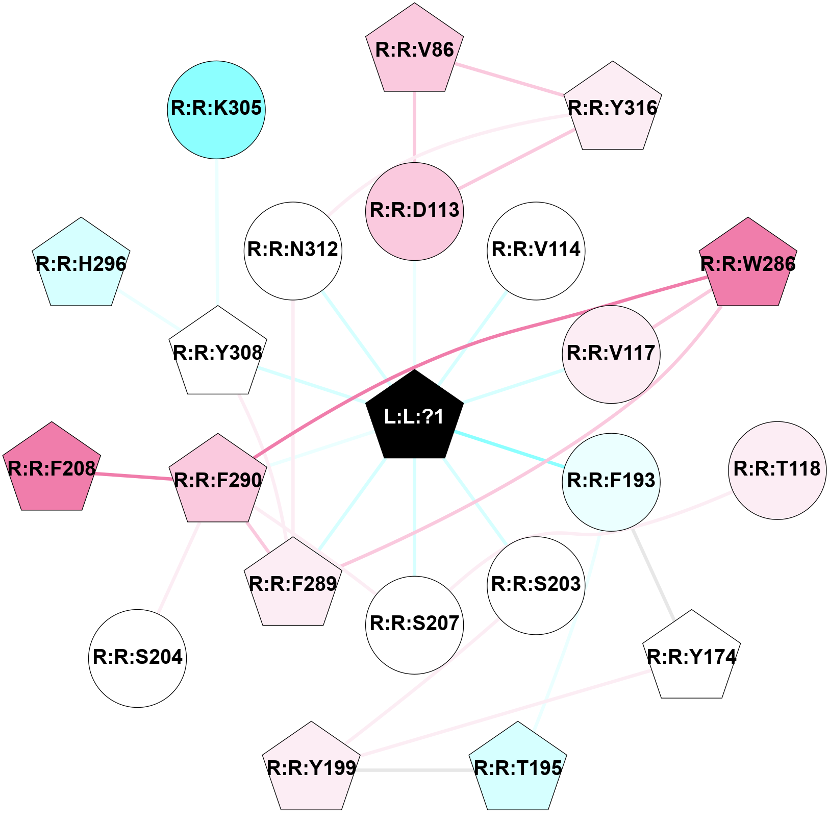 | Index | Node1 | Node2 | Int. Strength | Hub1? | Hub2? | Community | ConSurf1 | ConSurf2 |