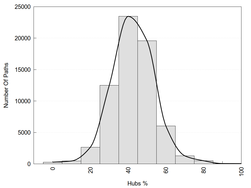 Hub1?, Hub2?: "Yes" if the corresponding node has more than 3 links, otherwise "No".
