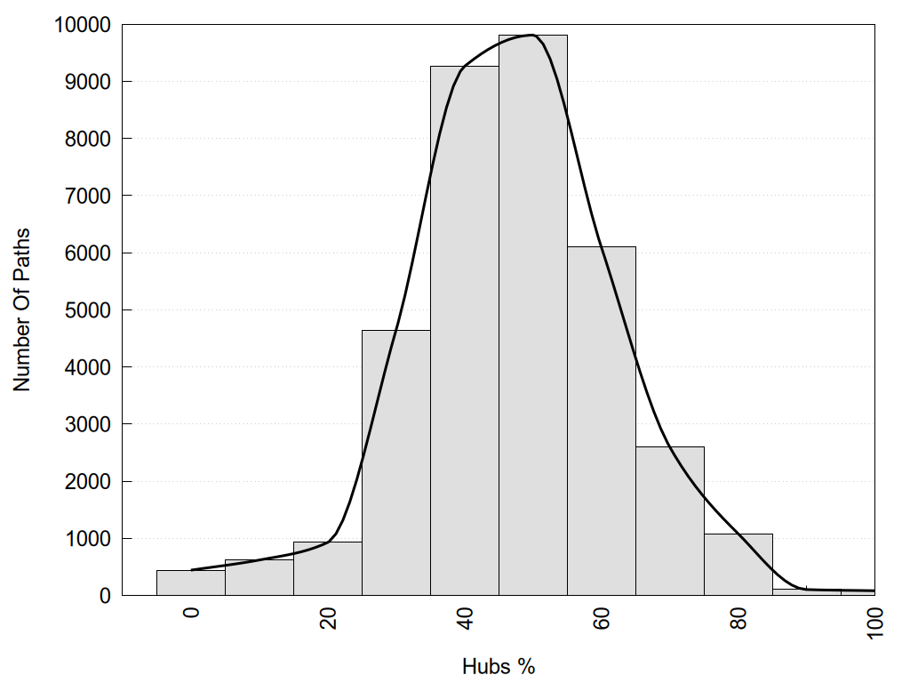 Hub1?, Hub2?: "Yes" if the corresponding node has more than 3 links, otherwise "No".