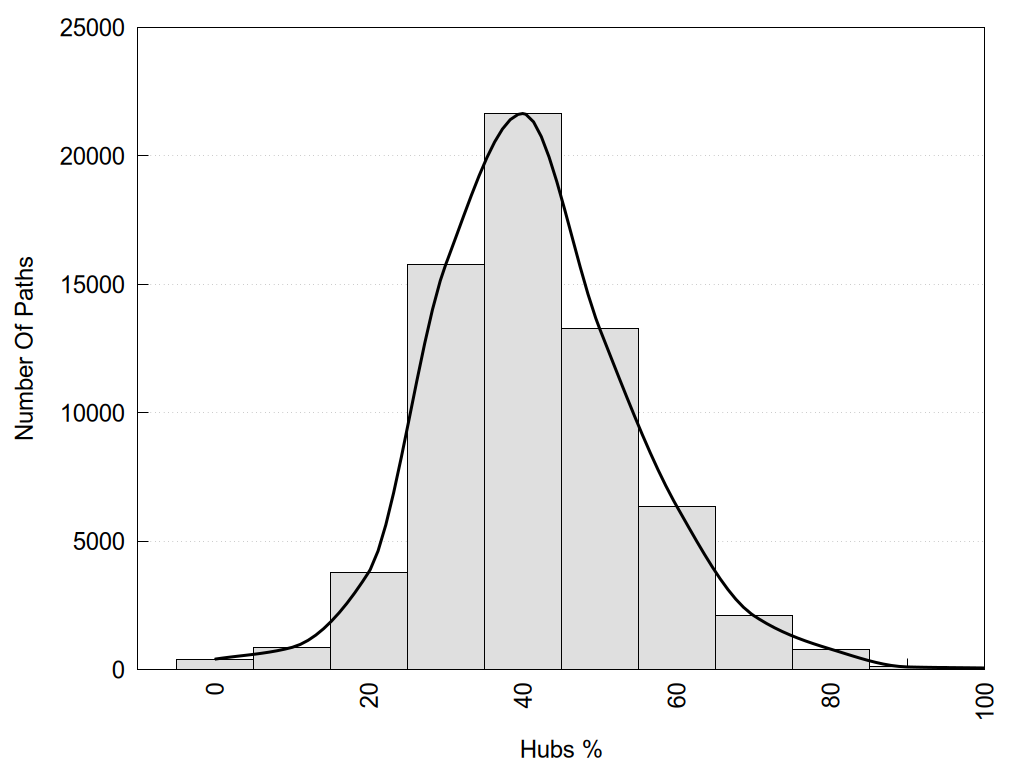 Hub1?, Hub2?: "Yes" if the corresponding node has more than 3 links, otherwise "No".