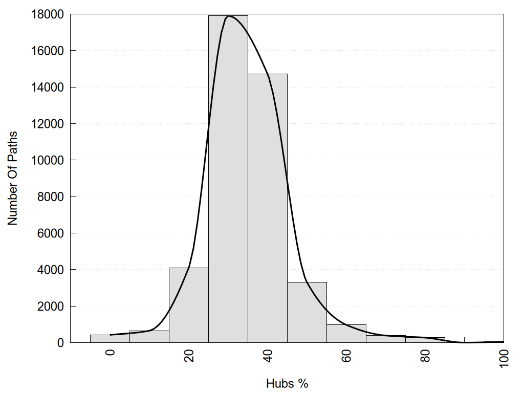 Hub1?, Hub2?: "Yes" if the corresponding node has more than 3 links, otherwise "No".
