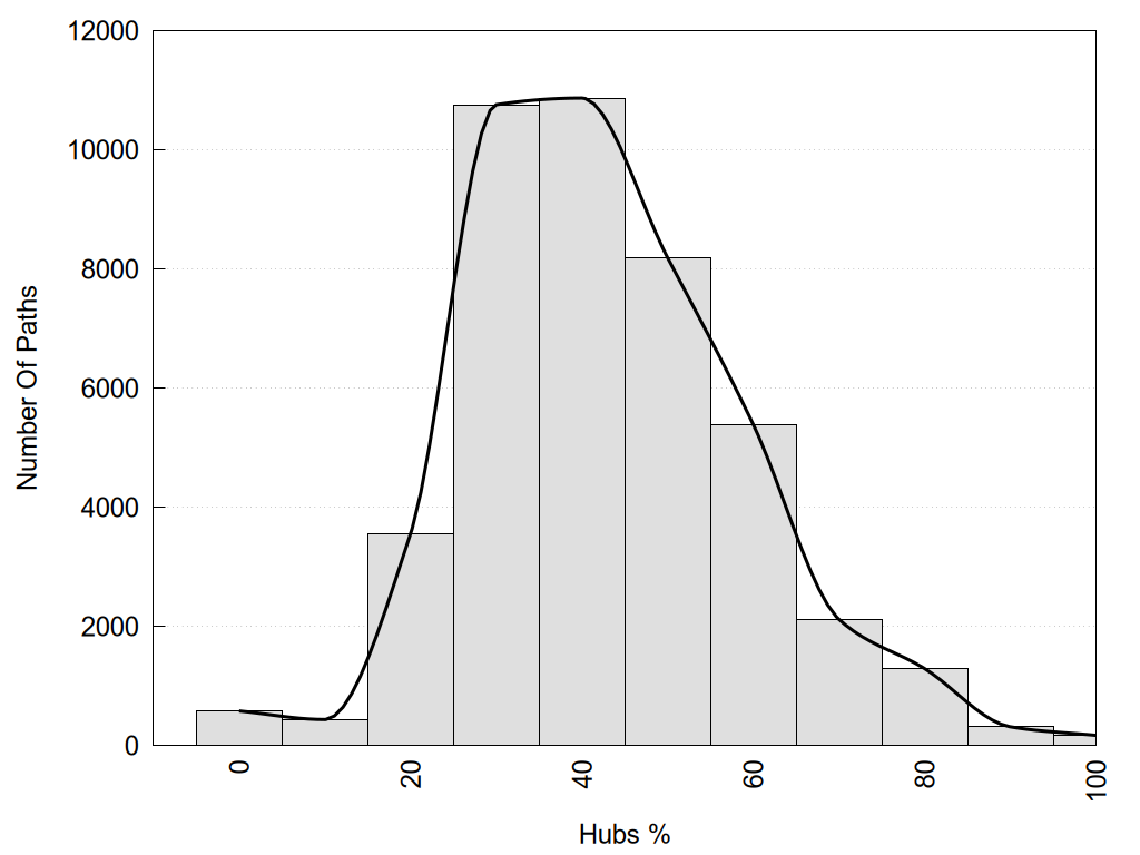 Hub1?, Hub2?: "Yes" if the corresponding node has more than 3 links, otherwise "No".