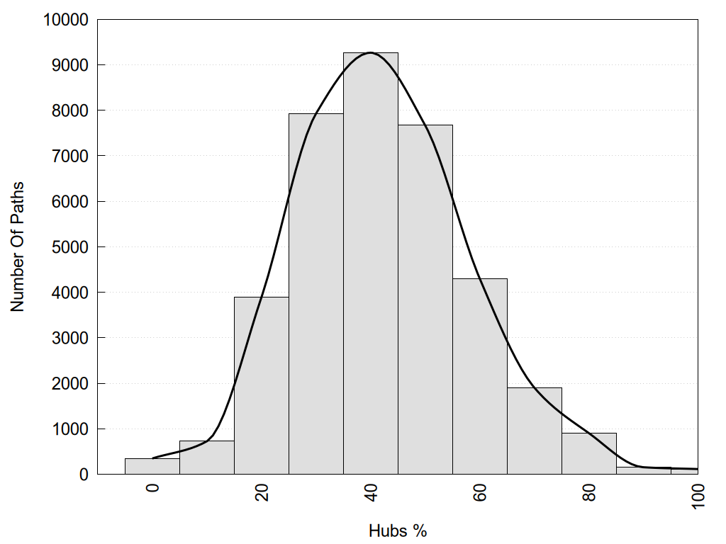 Hub1?, Hub2?: "Yes" if the corresponding node has more than 3 links, otherwise "No".