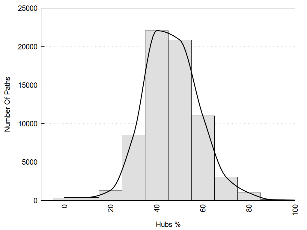 Hub1?, Hub2?: "Yes" if the corresponding node has more than 3 links, otherwise "No".