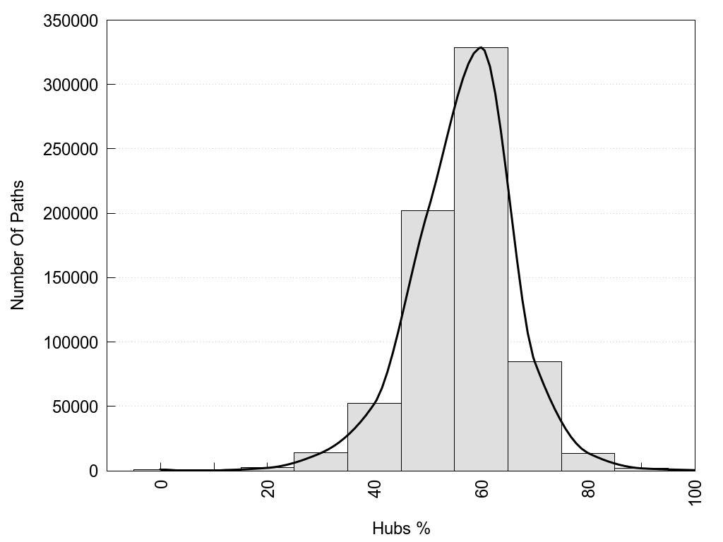 Hub1?, Hub2?: "Yes" if the corresponding node has more than 3 links, otherwise "No".