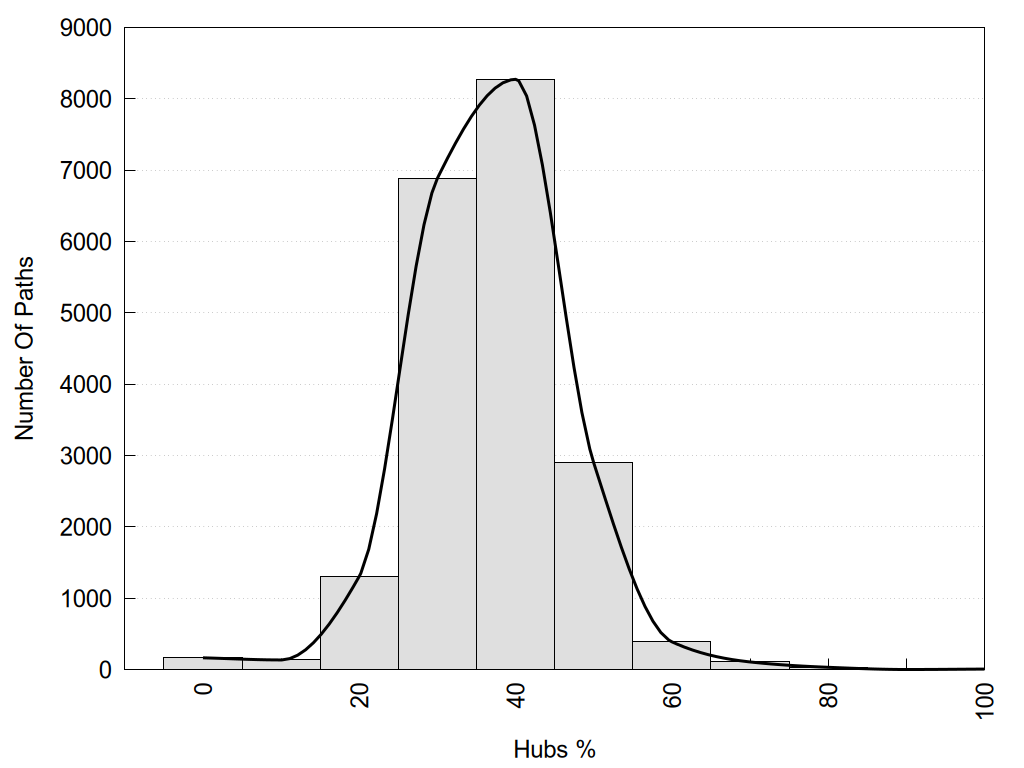 Hub1?, Hub2?: "Yes" if the corresponding node has more than 3 links, otherwise "No".