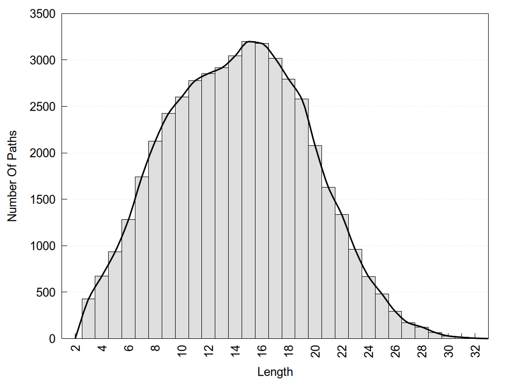 histograms of path distribution according to several parameters