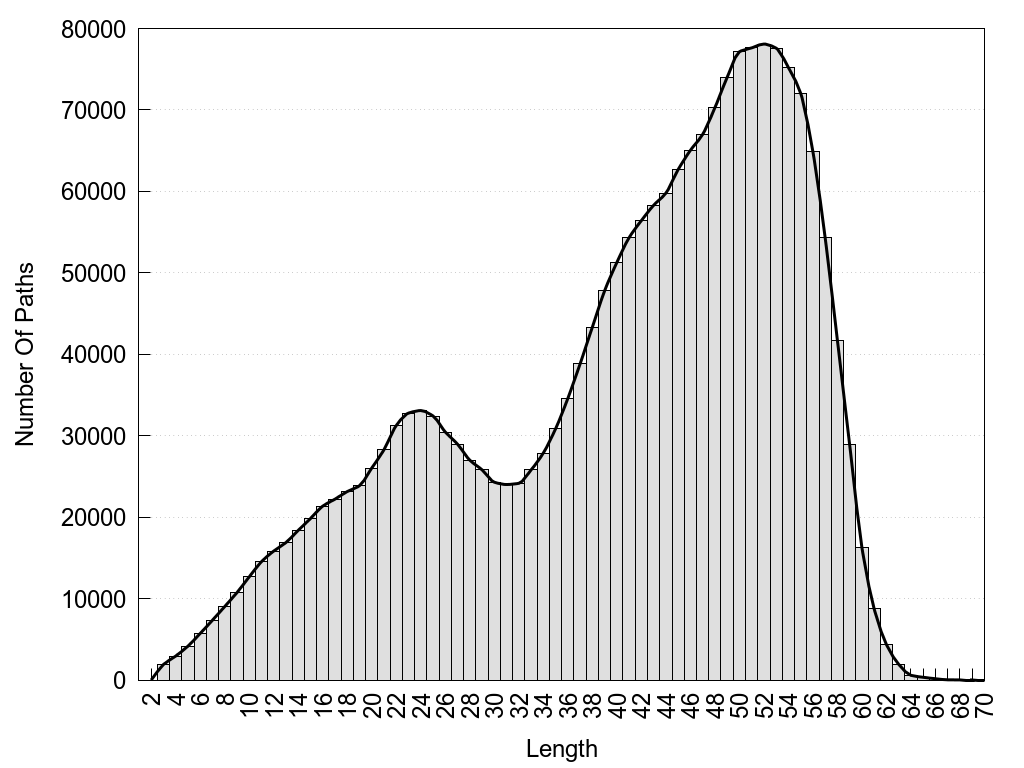 histograms of path distribution according to several parameters