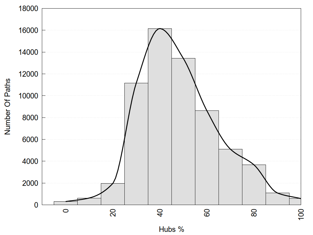 Hub1?, Hub2?: "Yes" if the corresponding node has more than 3 links, otherwise "No".