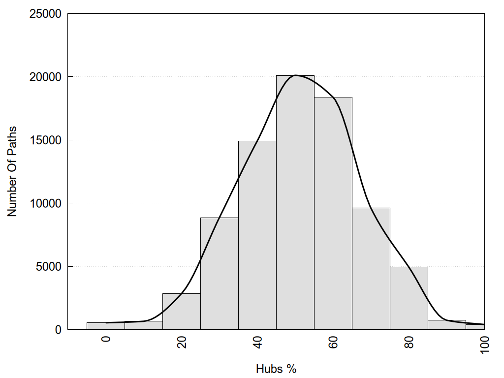 Hub1?, Hub2?: "Yes" if the corresponding node has more than 3 links, otherwise "No".