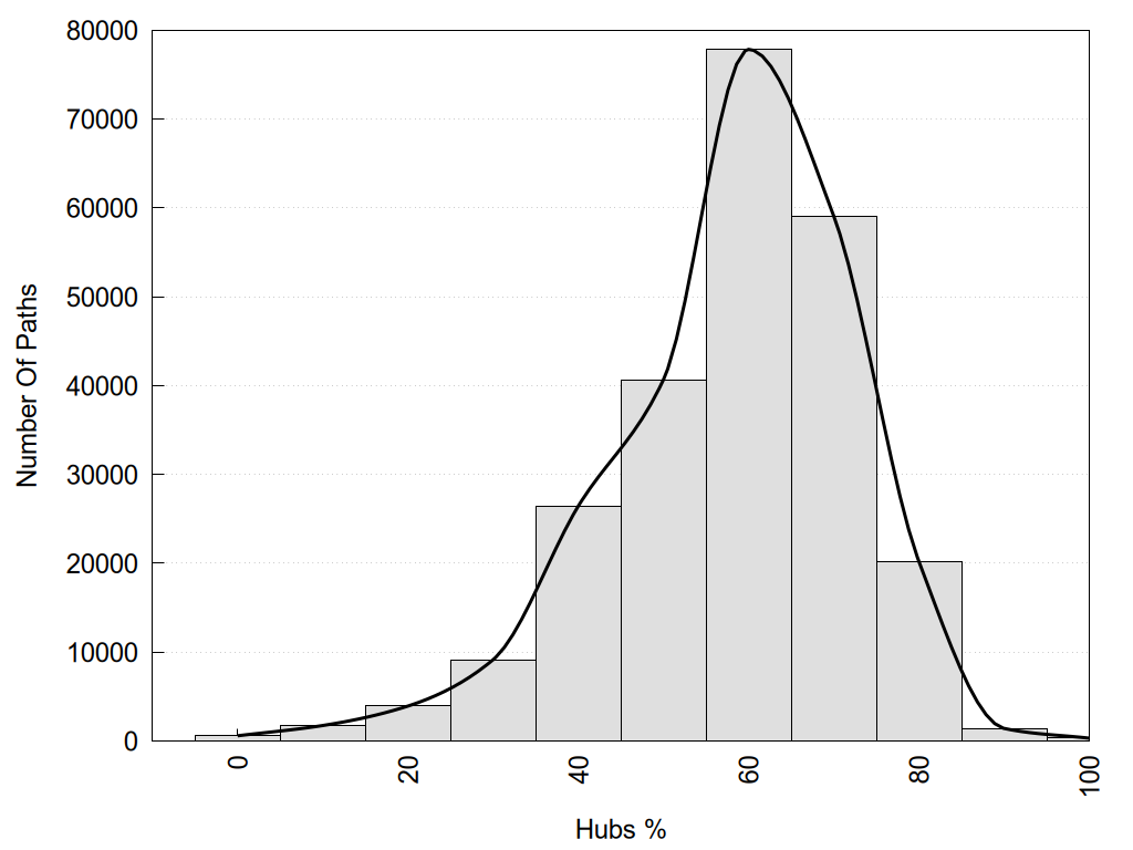 Hub1?, Hub2?: "Yes" if the corresponding node has more than 3 links, otherwise "No".