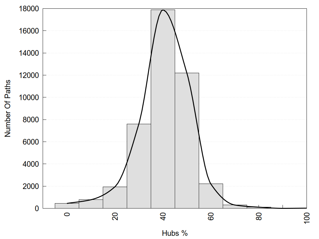 Hub1?, Hub2?: "Yes" if the corresponding node has more than 3 links, otherwise "No".