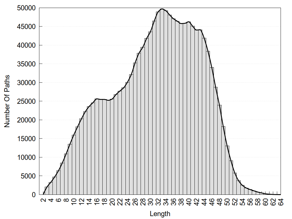 histograms of path distribution according to several parameters