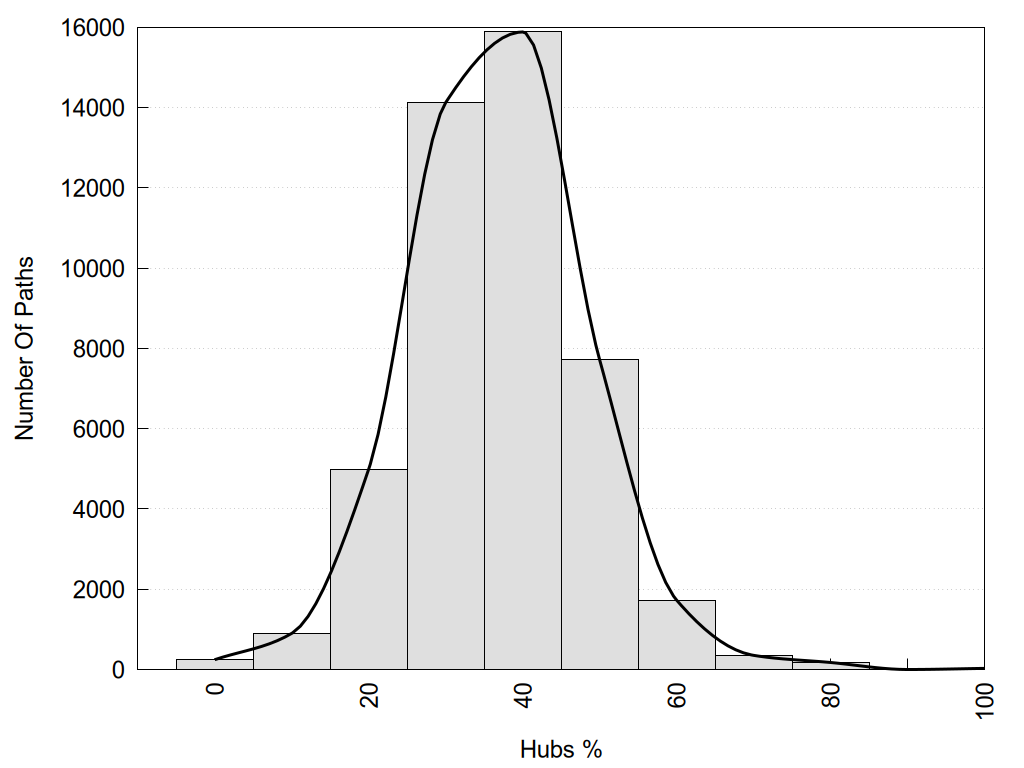 Hub1?, Hub2?: "Yes" if the corresponding node has more than 3 links, otherwise "No".