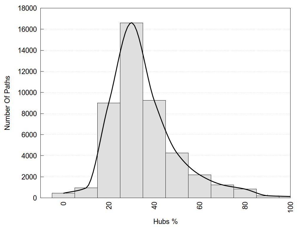 Hub1?, Hub2?: "Yes" if the corresponding node has more than 3 links, otherwise "No".