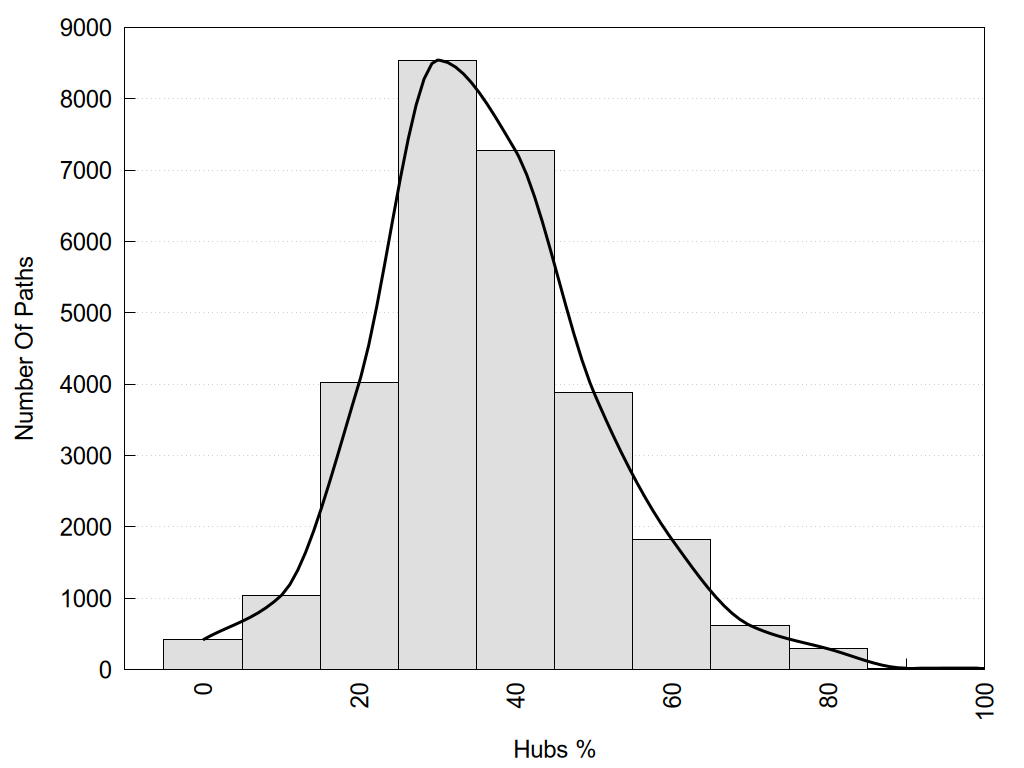 Hub1?, Hub2?: "Yes" if the corresponding node has more than 3 links, otherwise "No".