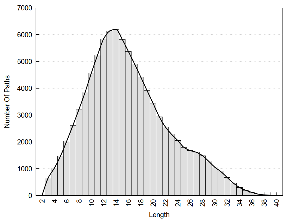 histograms of path distribution according to several parameters
