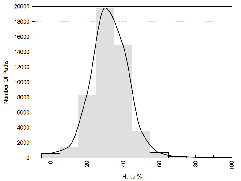 Hub1?, Hub2?: "Yes" if the corresponding node has more than 3 links, otherwise "No".