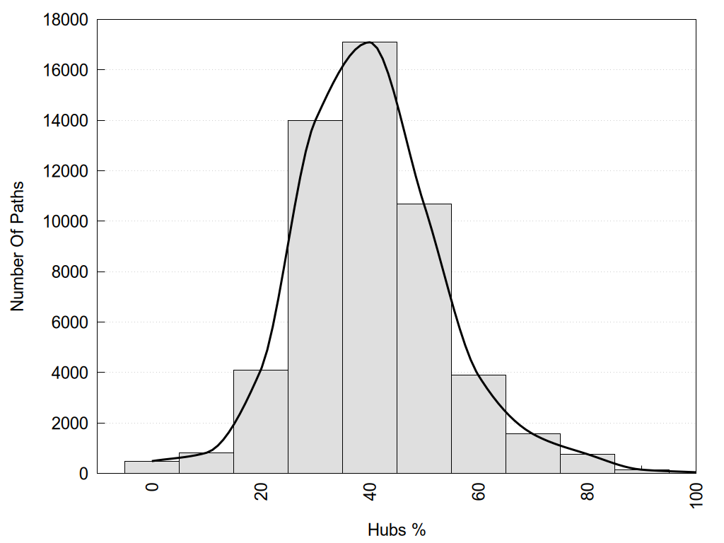 Hub1?, Hub2?: "Yes" if the corresponding node has more than 3 links, otherwise "No".