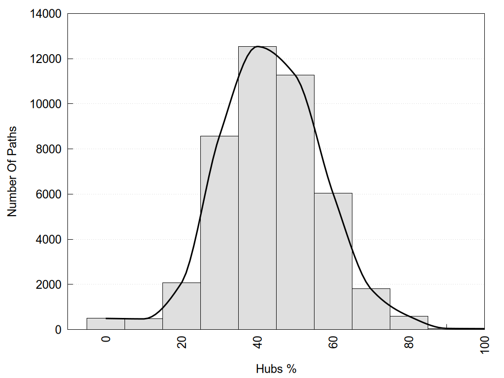 Hub1?, Hub2?: "Yes" if the corresponding node has more than 3 links, otherwise "No".