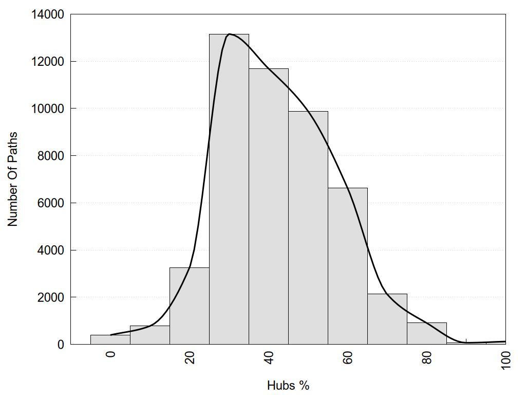Hub1?, Hub2?: "Yes" if the corresponding node has more than 3 links, otherwise "No".