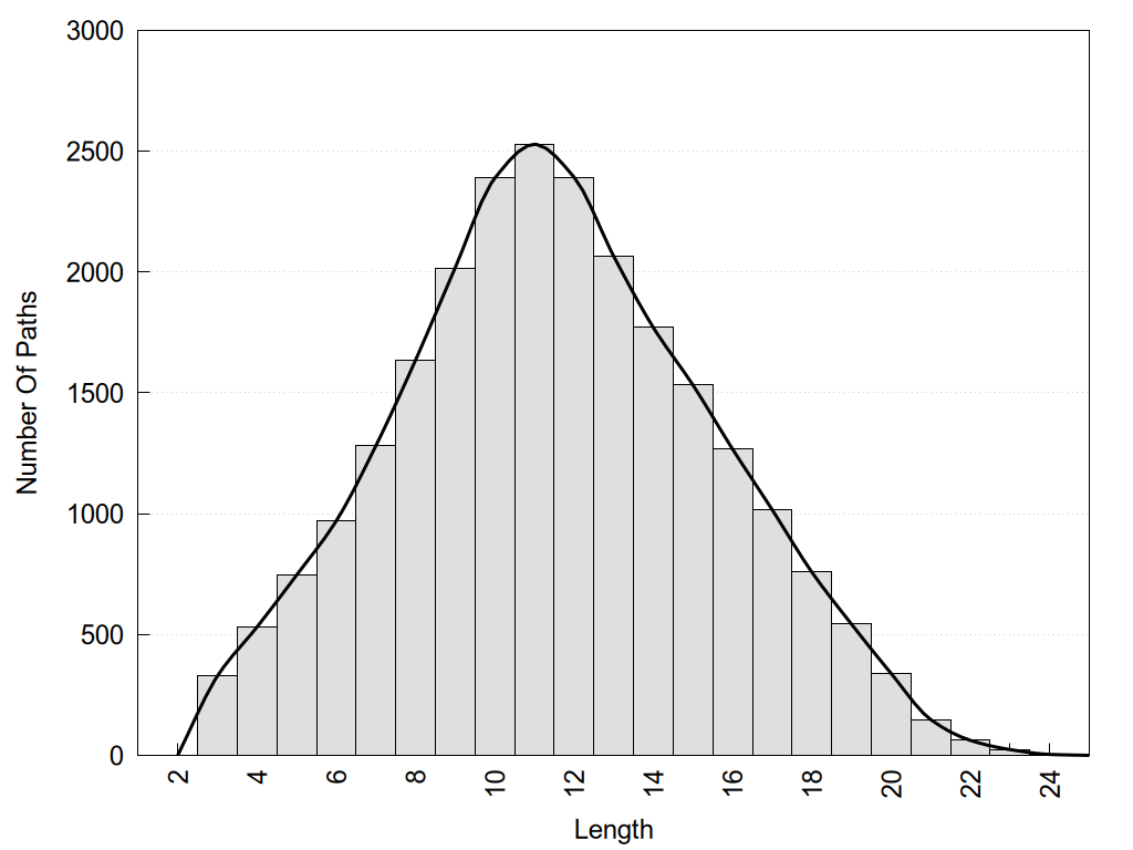 histograms of path distribution according to several parameters