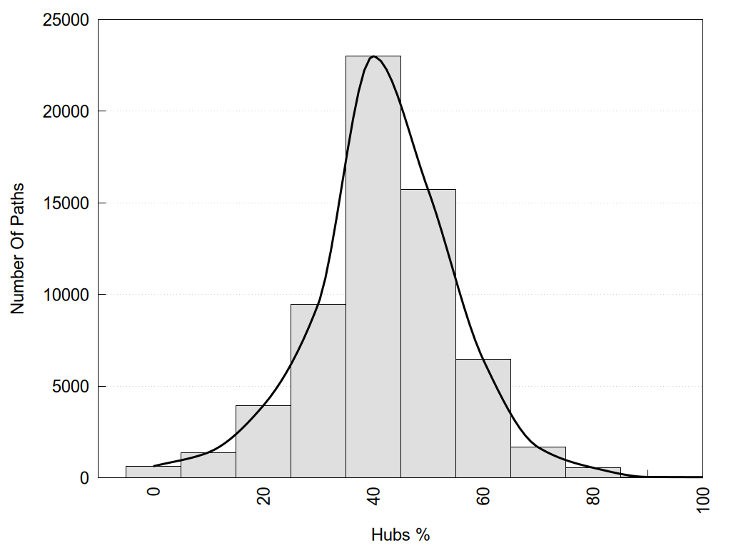 Hub1?, Hub2?: "Yes" if the corresponding node has more than 3 links, otherwise "No".