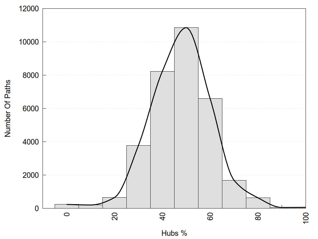 Hub1?, Hub2?: "Yes" if the corresponding node has more than 3 links, otherwise "No".