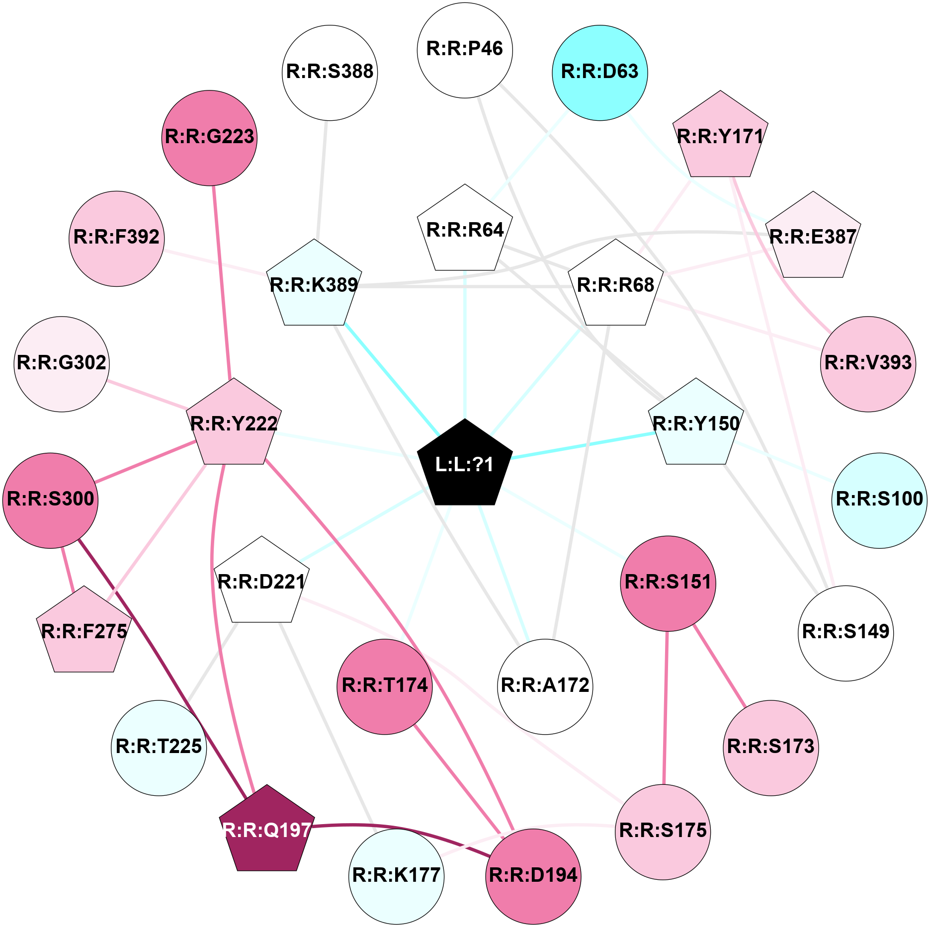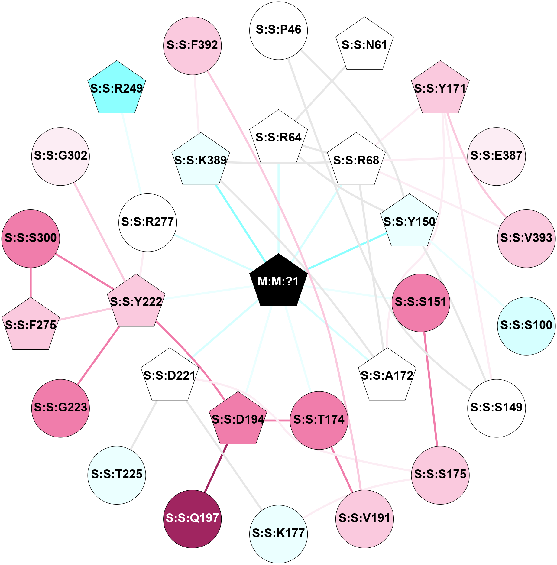 Links and nodes colored according to ConSurf Conservation Grade (See documentation): n/a 1 2 3 4 5 6 7 8 9 |