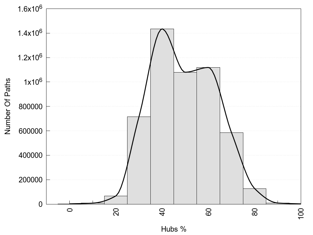 Hub1?, Hub2?: "Yes" if the corresponding node has more than 3 links, otherwise "No".