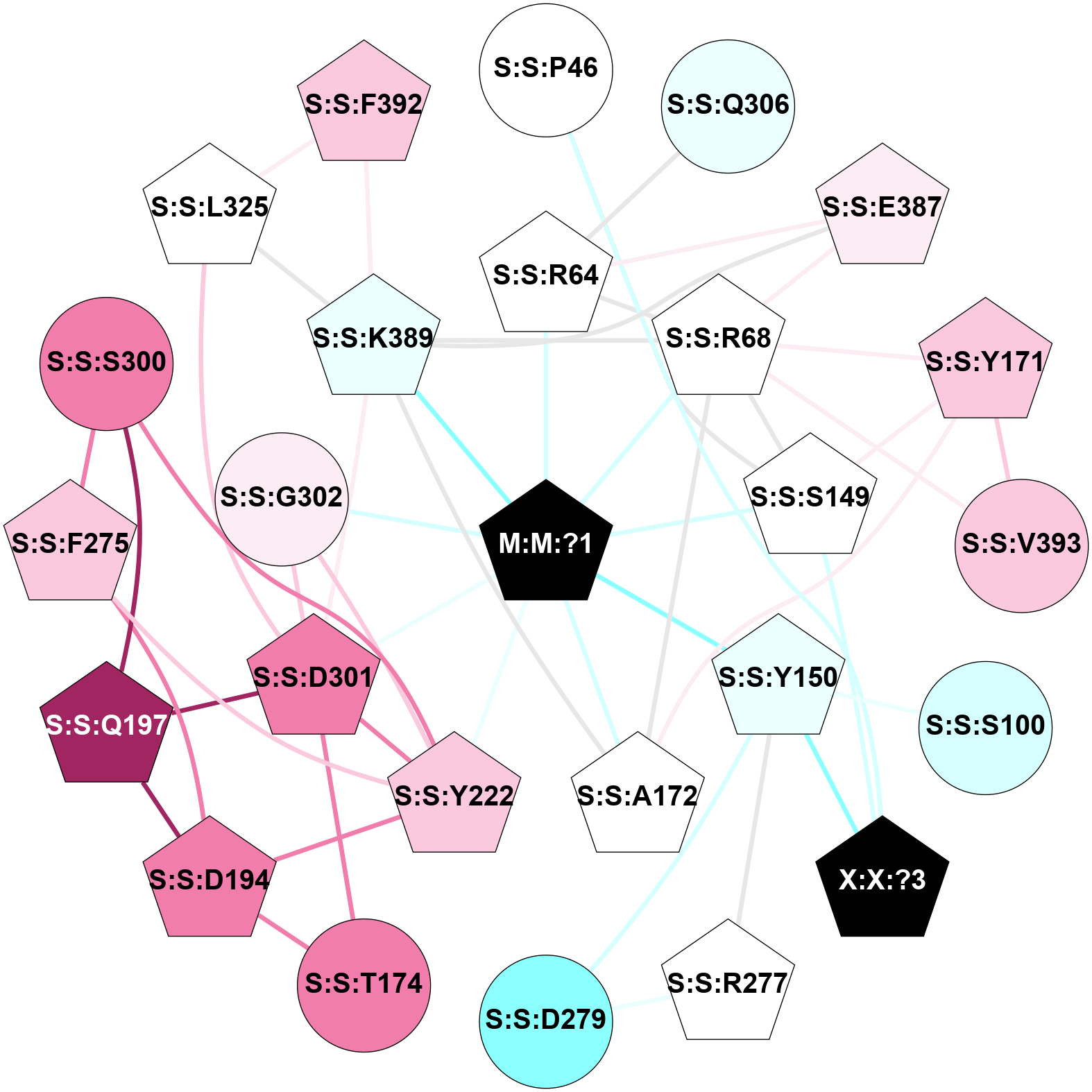 Links and nodes colored according to ConSurf Conservation Grade (See documentation): n/a 1 2 3 4 5 6 7 8 9 |
